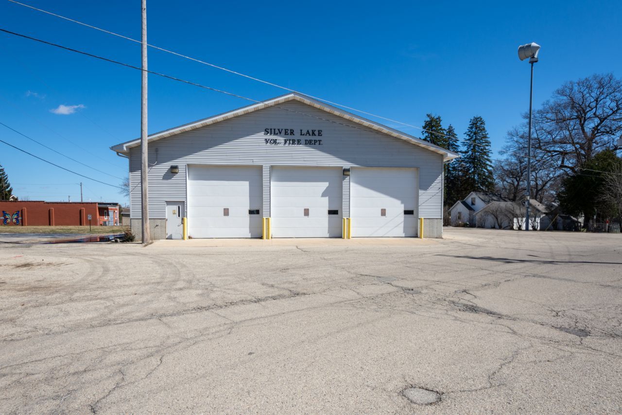This is the former Silver Lake municipal building and fire house. Two buildings. Bring your vision! Overall, everything is in pretty good condition. Firehouse: 5600 SF commercial building with 2 bay doors and Appox 20 outdoor parking spaces offers endless potential for warehouse, storage, or business operations. Offers a unique opportunity for a custom commercial space. Town Hall: This building approx. 4800 SF offers 6 offices, 2 large meeting rooms, 2 bathrooms, break room and additional outdoor parking spaces. Property is currently zoned Government/Institutional. Seller (Village) is open to reasonable rezoning requests subject to municipal approval process. Property includes a road easement for E Park Street that runs through a portion of the parking area. Buyer to perform due diligence regarding use and any restrictions. Vacant lot at 317 Lake St. are also for sale. Great for additional access to ally and this property.