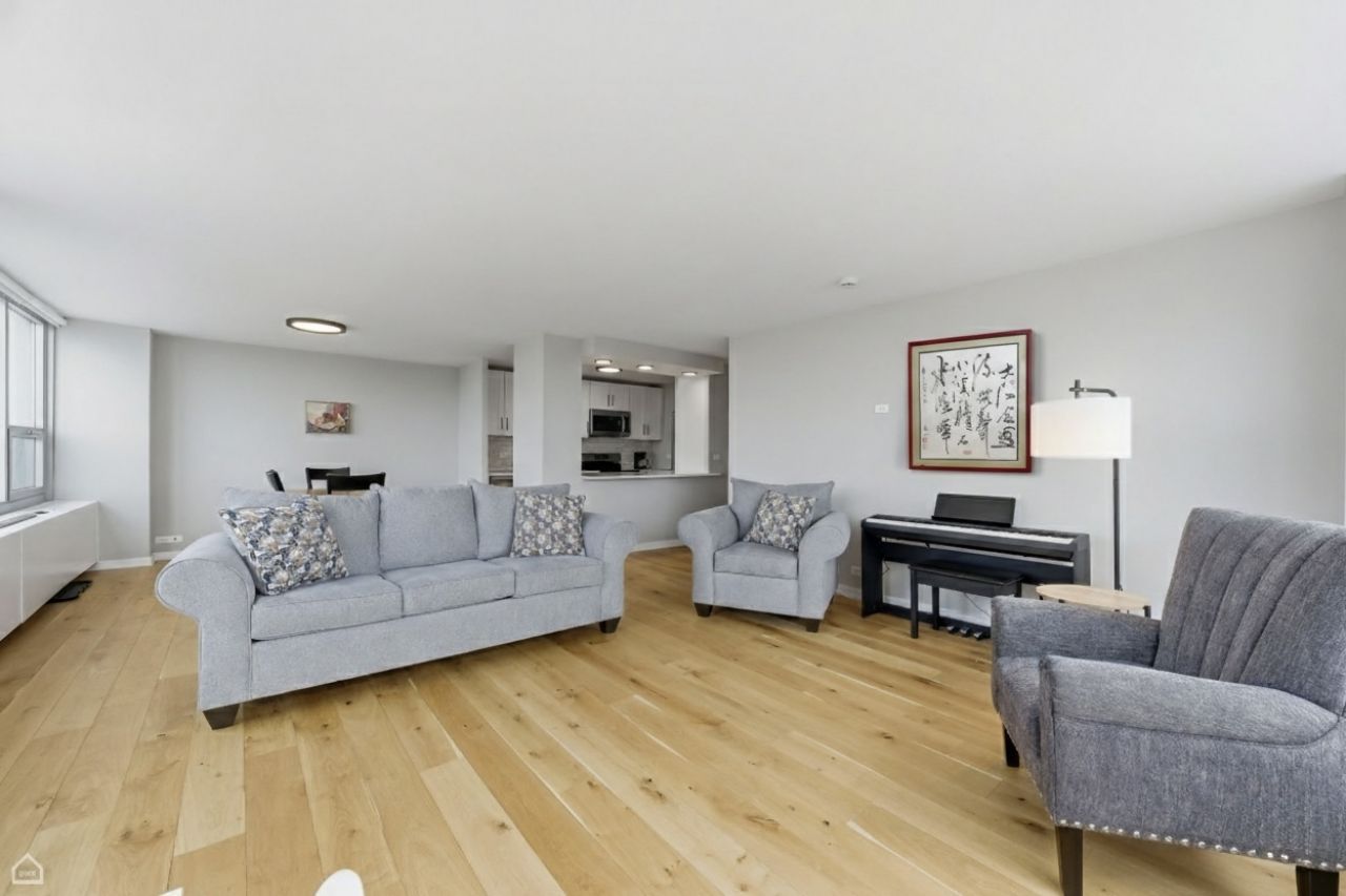Experience the pinnacle of urban living in this impeccably renovated 2-bedroom, 2-bathroom residence. Perched high above the city, this home offers award-winning panoramic views of the Museum of Science and Industry, Lake Michigan, and incredible sunsets over the U of C campus. The open concept living space is bathed in natural light, highlighting the nearly new wide-plank flooring and a gourmet kitchen designed for entertaining. Featuring sleek quartz countertops, stainless steel appliances, and a contemporary breakfast bar, the kitchen is as functional as it is beautiful. Both bathrooms have been elegantly updated with modern finishes to create a spa-like retreat. Beyond the walls of this stunning condo, you are steps away from the lakefront, a world-class museum, the University of Chicago, the upcoming Presidential Center, and conveniences like groceries and public transportation. This home offers a perfect blend of culture, convenience, and style. Additional amenities include on-site dry cleaning, laundry facilities, a penthouse party room, bike storage, exercise facility, and professional management with an on-site engineer.