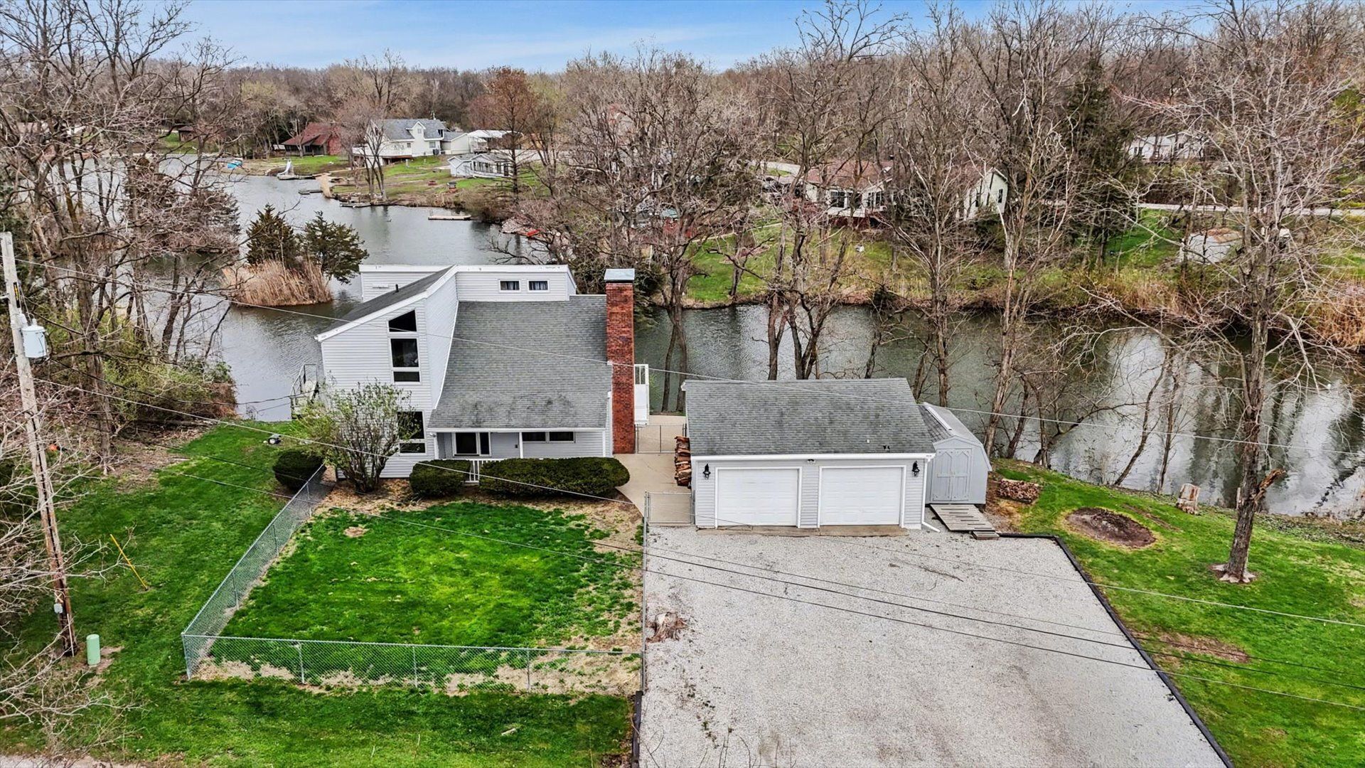 Welcome to your perfect year-round home or summer retreat on the highly sought-after Chain of Lakes in Leisure Time Estates! This spacious 3-bedroom, 2-bath home offers 1,620 square feet of comfortable living space with incredible waterfront views and direct access to boating, canoeing, and fishing right from your backyard. Enjoy outdoor living at its finest with two private docks, an upper deck, and a lower patio-ideal for relaxing or entertaining. Inside, the home features two cozy wood-burning fireplaces and a convenient main-floor bedroom. The unfinished walk-out basement provides endless potential for additional living space or storage. Situated on a fenced-in lot with plenty of parking, this property also includes a two-car detached garage and a garden shed for extra storage. Located in the desirable Oakwood School District, this home combines peaceful lakeside living with everyday convenience. Built in 1984, it's ready for your personal touch!
