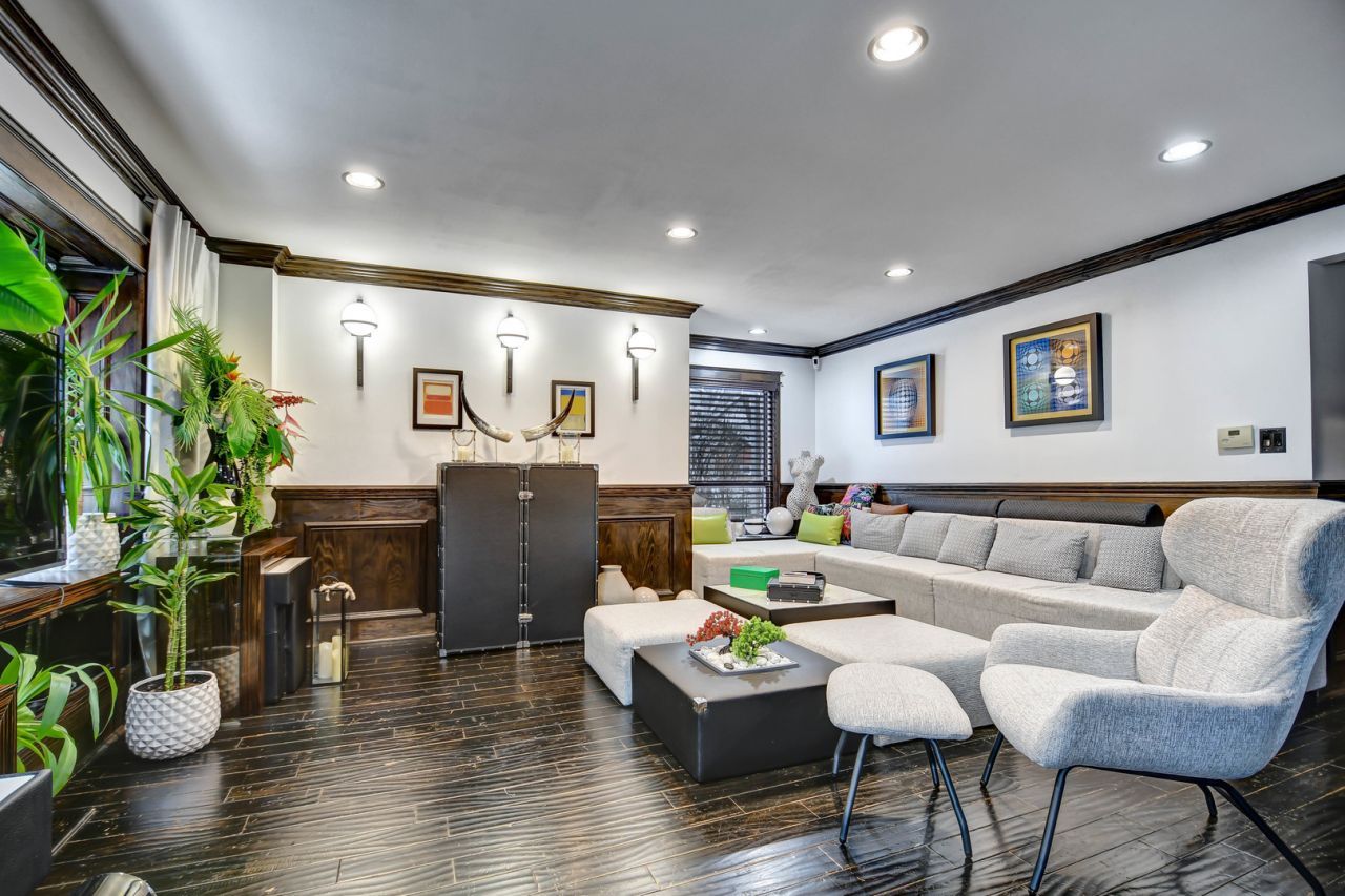 Step into a beautifully re-envisioned Hinsdale residence where every detail has been artfully redesigned. This first-floor condo with a finished basement and private garage offers effortless living defined by the perfect fusion of timeless craftsmanship and fresh contemporary style. The refined living room sets the tone with rich, hand-finished woodwork that brings depth and character, enhanced by clean recessed lighting for a modern touch. The dining room continues the look, showcasing dramatic paneling and expansive sliding glass doors that open to a private patio overlooking a wide green space ideal for outdoor entertaining. Seamless flow into the kitchen and bar seating makes the space equally suited for gatherings or everyday comfort. The striking kitchen marries bold aesthetics with practical function, featuring glossy wood-grain multi-toned cabinetry, stainless steel appliances wrapped in custom stainless steel base cabinets and drawers, floating shelves, and an efficient layout. Two bedrooms and two beautifully appointed bathrooms complete the main level. The primary bathroom offers boutique-hotel luxury with a crocodile leather-textured vanity, modern vessel sink, oversized mirror, and glass-enclosed shower. The second bathroom continues the elevated feel with espresso-toned marbled tile, stacked-stone accents, a glass-enclosed walk-in shower, and a warm wood-grain vanity topped with a sleek vessel sink. A finished basement provides valuable additional living space or storage, adding to the home's versatility. Close to top-rated schools, shopping, restaurants, and transportation, this exceptional residence blends modern sophistication with classic warmth. Schedule your visit to experience this one-of-a-kind home before this rare find is gone!
