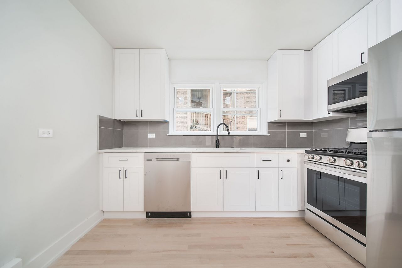 Renovated 2 bedroom 1 bath unit in Belmont Cragin available for rent. Move in Date May 1st. Upgraded interior with hardwood floors, upgraded kitchen cabinets with granite countertops and stainless steel appliances. Recently refinished hardwood floors. Two spacious bedrooms and an upgraded bathroom. High first floor unit. Laundry in the building and large laundromat right across the street. Owner looking for a stable tenant with a credit score above 650 points. Check it out today.