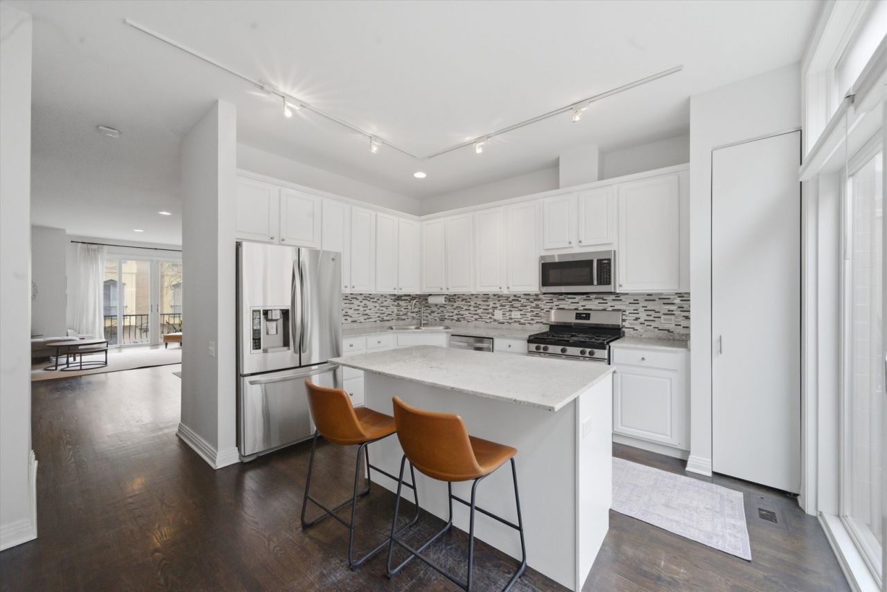 This townhouse lives like a single-family home in the heart of River West, located in the highly sought-after Via Como townhomes developed by Belgravia. This four-story home offers everything you need, just steps from Fulton Market and the West Loop-only one block from the Blue Line and moments from the Halsted/Grand/Milwaukee six corners. The first level features a private patio, a spacious office with great natural light, a half bath, and an attached two-car garage. The main living level offers an expansive dining and family room area with plenty of space for a large sectional, play area, and a 12-person dining table. The kitchen includes an eat-in area for a full-sized table and has been updated with white cabinetry, granite countertops, and a stylish backsplash. The third level features a generous primary suite with two walk-in closets and a fully renovated bathroom, along with a large second bedroom and an updated full bath. The top floor includes a spacious third bedroom with direct access to a rooftop deck featuring composite decking and great views. This level can also serve as a second family room or flexible living space. Explore the property in 3D-click the 3D button to take a virtual tour and experience every detail.