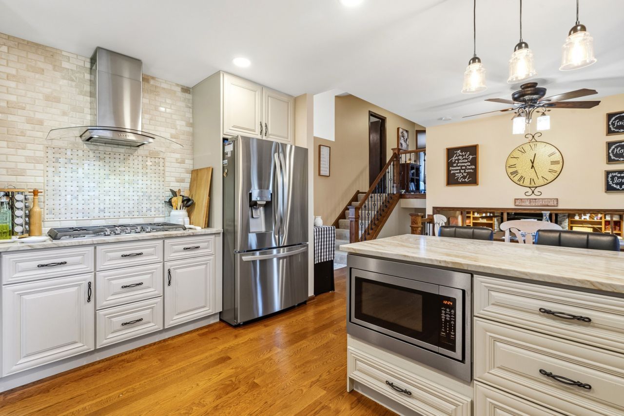 Welcome to this beautifully updated 4-bedroom, 3 full bathroom quad-level home nestled in the heart of Lemont! From the moment you step inside, you'll be impressed by the soaring vaulted ceilings and rich hardwood floors that flow seamlessly throughout the entire main level. The stunning eat-in kitchen is truly the centerpiece of the home, featuring an updated backsplash, stainless steel appliances, granite countertops, 42-inch off-white cabinetry, a 5-burner cooktop, and canned lighting-perfect for both everyday living and entertaining. Just a few steps down, the inviting lower level offers a spacious family room complete with a beautifully tiled electric fireplace. This level also boasts a massive built-in buffet with granite countertops and a convenient dry bar area, making it ideal for hosting gatherings. You'll also find the fourth bedroom and a recently remodeled full bathroom featuring a beautifully done stand-up shower and luxurious radiant heated floors. Upstairs, you'll discover three generously sized bedrooms, including the primary suite with vaulted ceilings and three ample closets. The shared full bathroom includes a whirlpool tub and a double sink vanity, offering both comfort and convenience. The sub-basement is an entertainer's dream, featuring a large 16x24 recreational space perfect for a game room, home gym, or media area, along with a spacious storage room. In addition, the basement includes a beautifully done stand-up shower, adding both style and functionality to the space. Step outside to your private backyard oasis, which is fully fenced and designed for relaxation and fun. Enjoy the recently redone oversized deck with a charming gazebo, an above-ground pool, and a shed for additional storage. Additional updates include a brand new attic fan and insulation, newer windows throughout, and a fully renovated main level and kitchen completed in 2022. Ideally located within walking distance to Lemont High School, as well as parks, shopping, and dining, this home truly has it all. Don't miss your chance to make it yours!